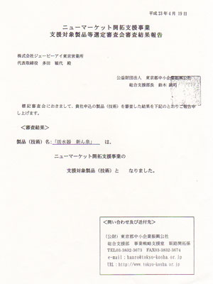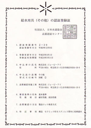 由日本JBI公司所製造的新泉活水器,得到日本水道水協會的認證。